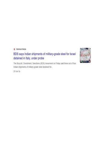 (Adnkronos) – 28 Marzo 2026_ Tre delle quattro spedizioni indiane di acciaio di grado militare destinate a Israele sono state bloccate e sono ora sotto indagine in Italia, con la notizia che arriva fino in India. Le autorità italiane stanno investigando su questi carichi, con una spedizione al porto di Cagliari e altre due al porto di Gioia Tauro, a seguito delle pressioni del movimento globale a guida palestinese Boycott, Divestment, Sanctions (BDS). L'acciaio, proveniente dall'India e identificato dal movimento BDS, No Harbour for Genocide e dall'organo investigativo The Ditch, è destinato ai produttori di armi israeliani per la produzione di armi. Un rapporto del People's Embargo for Palestine ha inoltre evidenziato che l'Italia ha agito come hub di trasbordo nel dicembre 2025 per un carico originario di R. L. Steels and Energy Ltd, un'azienda di Daulatabad, India, destinato a una struttura militare israeliana. La notizia, che sottolinea il ruolo dell'Italia nel transito di materiali militari, è stata riportata dal sito maktoobmedia.com. L'Italia, in quanto firmataria delle Convenzioni di Ginevra, del Trattato sul Commercio delle Armi (ATT) e della Convenzione sul Genocidio, è legalmente tenuta a garantire che le sue esportazioni non facilitino gravi violazioni del diritto internazionale. Fonte: https://www.maktoobmedia.com
